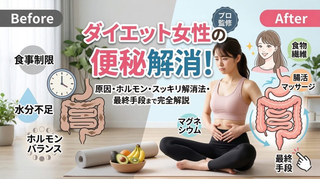 ダイエット中の便秘に悩む女性へ 「ダイエットを頑張っているのに、お通じがなくてお腹が張る……」 「食べる量を減らしているのに、逆に体重が落ちにくくなった気がする」 そんな絶望感に近い悩みを感じていませんか? 実は、減量中の女性にとって「便秘」...