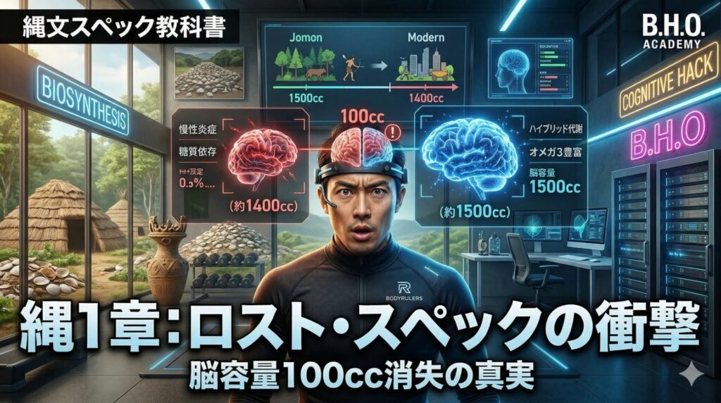 第1章:ロスト・スペックの衝撃 〜なぜ現代人の脳は100cc縮んだのか?〜 1. 人類史上最大の「脳のダウングレード」 考古学的な事実として、約1万年前の縄文人の脳容量(約1,500cc)に対し、現代人の脳は約1,400ccまで縮小しています。この「100ccの消失」...